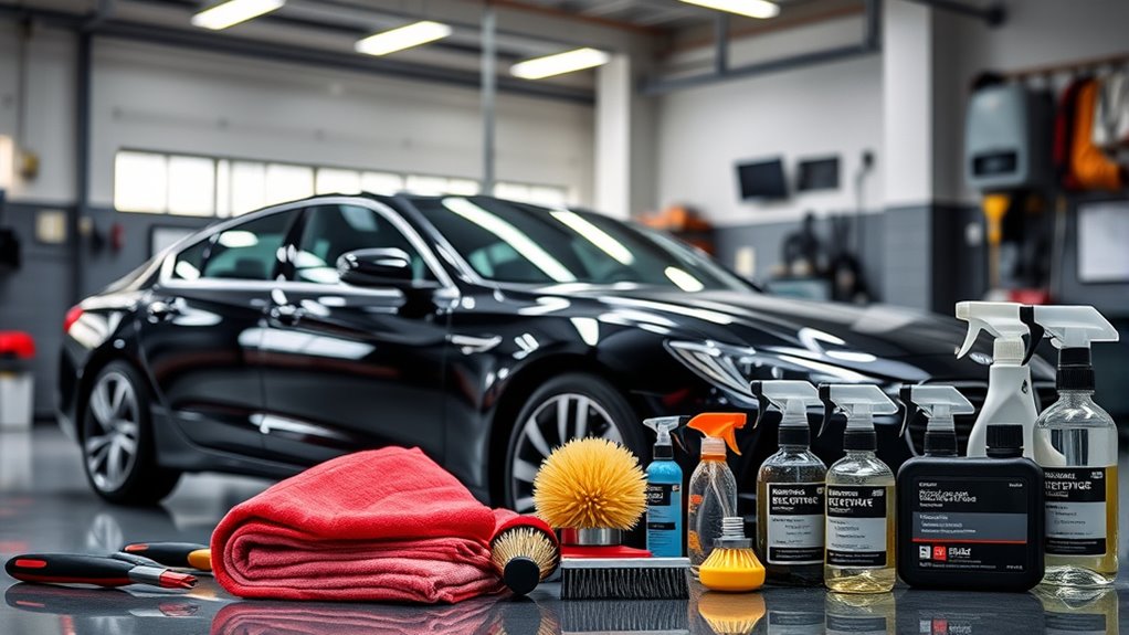 If you want my top picks for keeping your ride spotless in 2025, I recommend checking out various car detailing kits that suit different needs. Whether you’re after a thorough 40-piece set from AUTODECO, a versatile Chemical Guys package, or smaller specialized options like interior or wheel cleaners, there’s something for everyone. Each kit offers tools to protect and clean your vehicle safely. Keep going to discover the best options to keep your car spotless all year long.
