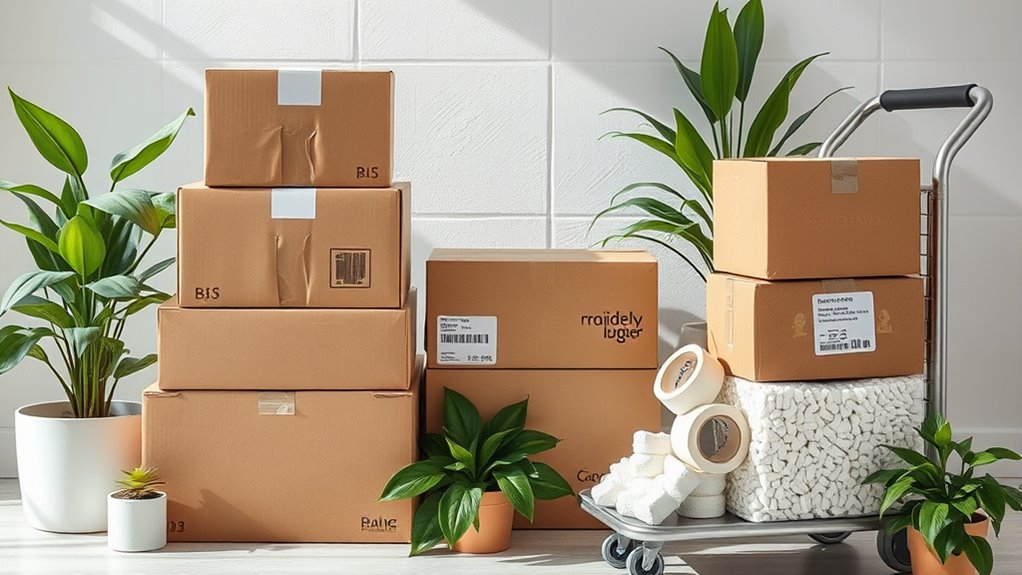 When it comes to extreme weather, sustainable shipping supplies hold their own. I’ve tested eco-friendly materials like biodegradable packing peanuts and recycled cardboard in various conditions, and they perform reliably—no throwing in the towel. While some worry about durability, I’ve found that many eco-friendly options are built tough, proving that you don’t have to sacrifice strength to stay green. It’s a win-win, even when the weather throws a tantrum.