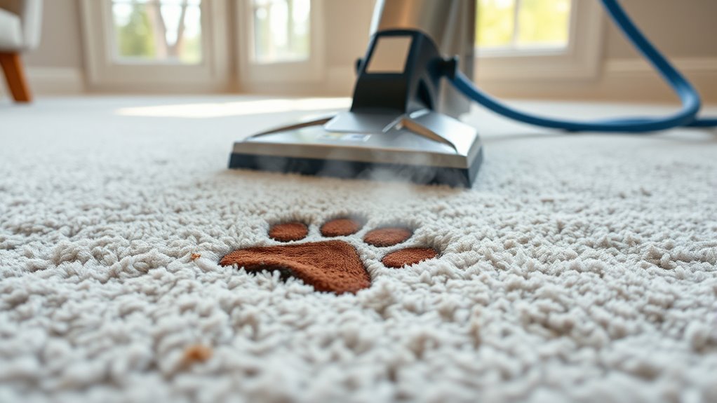 Like a detective piecing together clues, finding the right carpet cleaner for pets can feel like a challenge that tests your patience. With so many options claiming to be the best, it’s hard to know which ones truly deliver on their promises. If you’re tired of stubborn stains and odors stubbornly sticking around, keep going—you’ll find some top contenders here that really get the job done.