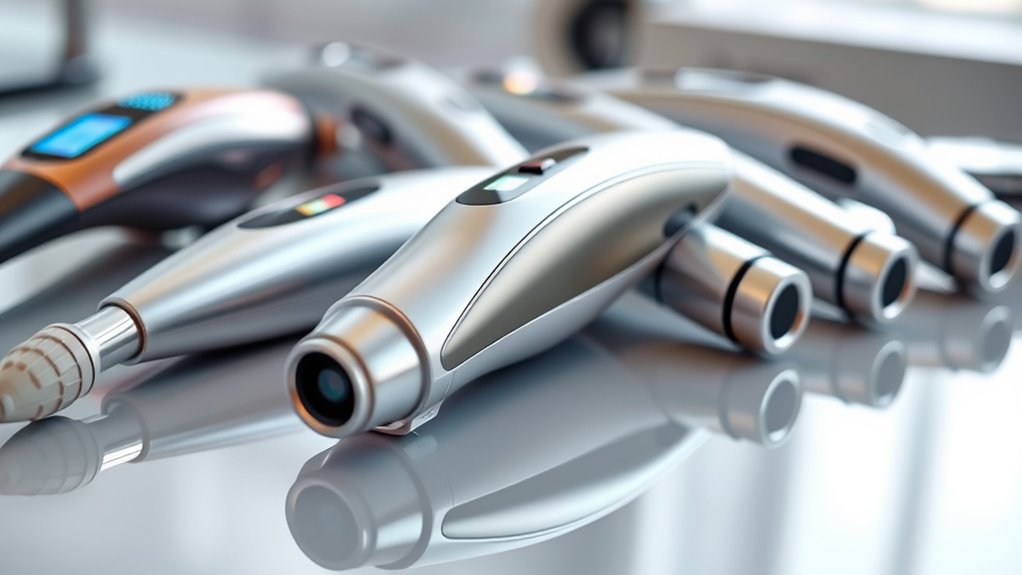 Choosing a hair removal laser device that’s compatible with your skin tone is essential for safe and effective results. Most devices work best on light to medium skin tones and may not be safe for darker skin, risking burns or pigmentation issues. Always check the device’s skin compatibility chart to ensure it matches your specific skin color before buying. Some advanced devices come with skin sensors that automatically detect your skin tone and adjust their energy levels, adding an extra layer of safety. Using a device outside its recommended skin tone can lead to ineffective results or skin damage. Keep in mind that very dark skin or very light hair (red, grey, or blonde) might require different removal methods, as many laser devices aren’t suitable for these cases.