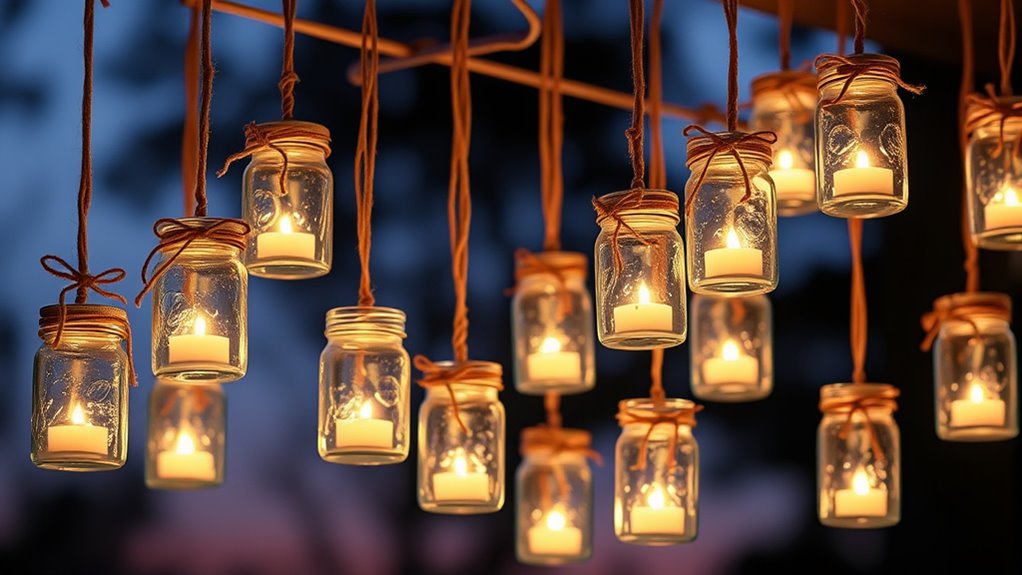 If you’re looking to add cozy charm to any space, I recommend checking out some top hanging mason jar tealight kits. From vintage-inspired pendant lights to solar lanterns, these options are perfect for indoor or outdoor decor. Many kits include sturdy hardware, stylish finishes, and eco-friendly features. Whether you want rustic, modern, or farmhouse designs, there’s something for everyone. Keep exploring, and you’ll discover more options to brighten your home or garden with these lovely jars.