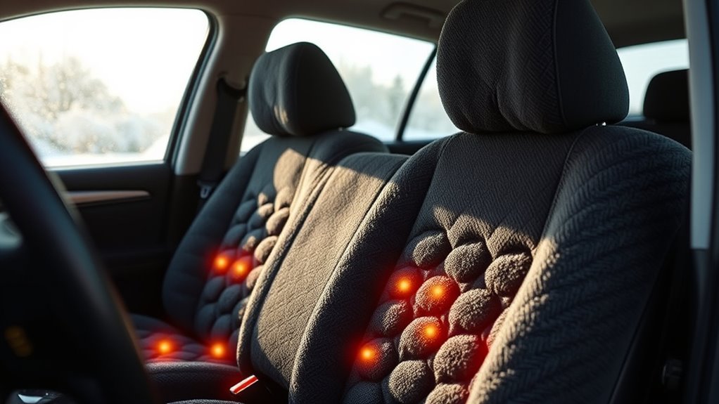 If you’re looking for the best heated car seat covers to stay cozy this winter, you’ve got plenty of options. From universal, all-season designs with adjustable heat and massage functions to waterproof options that protect your seats, there’s something for every preference. Material choices range from plush velour to durable faux leather, and features like auto shutoff and compatibility with airbags ensure safety. Keep exploring, and you’ll find details that help you pick the perfect one for your needs.