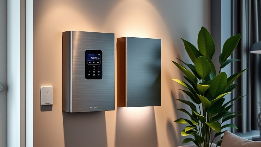 When selecting a high-end home battery backup system, I focus on several key factors to guarantee it fits my needs. I consider power capacity, scalability, and how well it integrates with my existing setup, along with charging options and smart management features. These points help me choose a system that’s reliable, efficient, and future-proof.