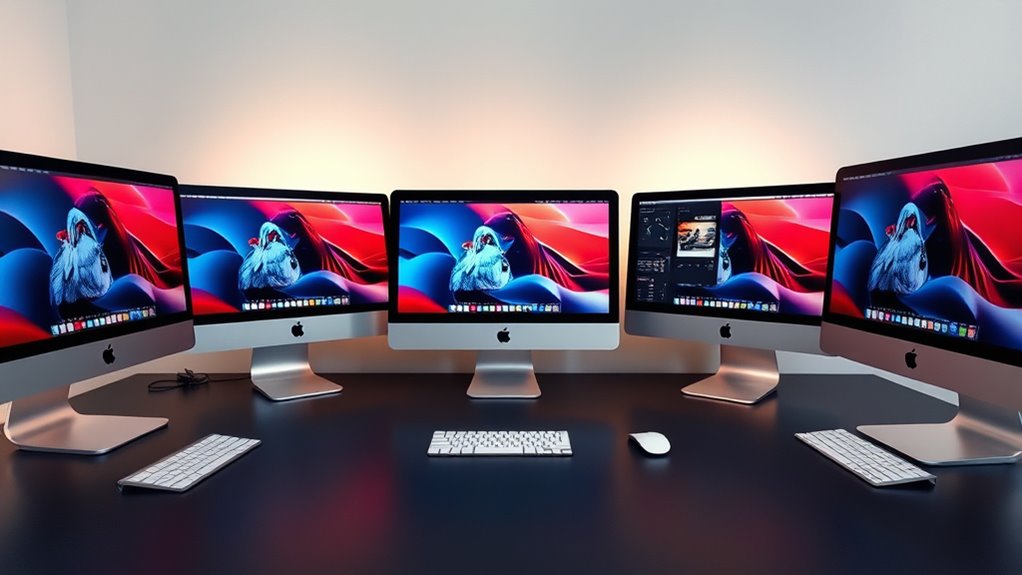 Absolutely, an iMac can handle professional photo editing software without lag, especially the newer models with powerful processors and ample RAM. I’ve experienced smooth performance when using programs like Adobe Photoshop and Lightroom, even with large files. The key is choosing an iMac with a strong GPU and sufficient memory, which guarantees quick rendering and seamless editing. So, whether you’re retouching or organizing photos, an iMac won’t slow you down.