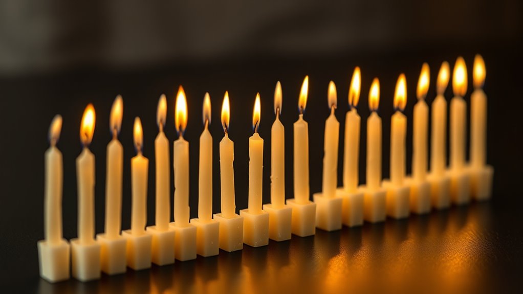 The burn characteristics of low-soot palm wax wicks play a significant role in how cleanly they perform. A steady, slow burn guarantees minimal flickering and reduces soot buildup, keeping indoor air cleaner. Many of these wicks are coated with natural waxes like beeswax or soy wax, which enhance combustion efficiency and further decrease soot emissions. Proper wick sizing and trimming are essential; an oversized or untrimmed wick can allow too much oxygen, leading to incomplete combustion and increased soot. Additionally, the material composition—free from metals and synthetic additives—helps maintain a cleaner burn and minimizes smoke. Overall, paying attention to burn rate, steadiness, and material quality ensures that your candle burns bright, clean, and efficiently.