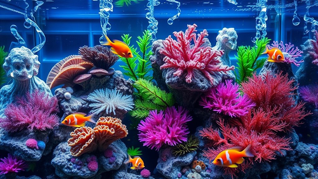 Choosing luxury aquarium accessories requires careful attention to material durability, as these pieces need to withstand constant water exposure, cleaning, and environmental changes. High-quality accessories are typically crafted from stainless steel, resin, or non-toxic plastics, ensuring they stay intact over time. Resistance to rust, corrosion, and fading is vital for maintaining both their look and functionality. Durable materials can endure frequent cleaning and harsh conditions, including saltwater environments, without cracking or degrading. The choice of material directly impacts the accessory’s lifespan; premium options offer extended use and help avoid frequent replacements. This not only saves money but also keeps your aquarium looking consistently high-end. Ultimately, selecting resilient materials ensures your luxury setup remains beautiful and functional for years to come.