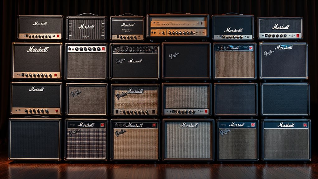 Luxury guitar amps differ from standard models mainly through superior build quality, high-end components, and advanced features. I notice they deliver richer tone, more dynamic range, and often come with customizable settings that help me craft my perfect sound. They’re crafted with attention to detail, offering durability and aesthetic appeal. Overall, they elevate my playing experience by providing clarity, warmth, and a level of performance that standard amps simply can’t match.