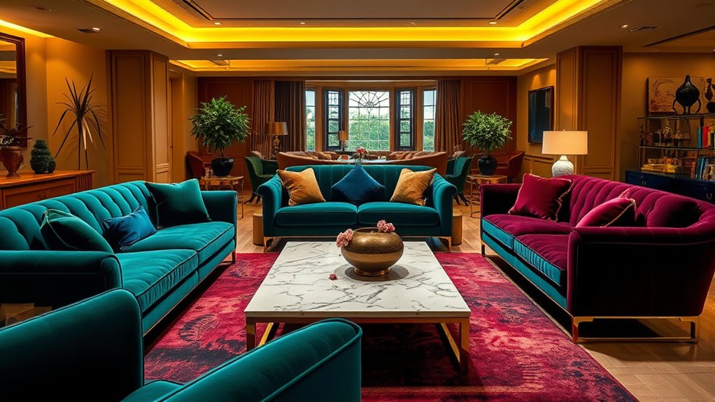 Luxury sofa brands guarantee durability and quality by using high-end, resilient materials like top-grain leather, strong hardwood frames, and premium foam cushions. They meticulously craft each piece, paying attention to craftsmanship details and rigorous testing. I’ve found that these brands also invest in quality control throughout production, which guarantees that their sofas not only look stunning but stand the test of time, providing lasting comfort and elegance.