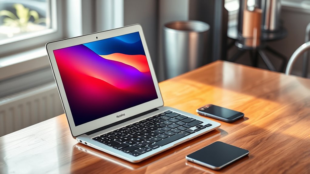 Integrating a MacBook Air with 16GB+ unified memory into the Apple ecosystem offers seamless connectivity and enhanced productivity. It effortlessly connects with other Apple devices like iPhone, iPad, and Apple Watch, enabling features like Handoff, AirDrop, and Universal Clipboard for quick sharing and continuous workflow. You can mirror your iPhone or iPad screens, boosting media consumption and multitasking without extra hardware. macOS allows you to run exclusive Apple ecosystem apps that sync data and settings across devices, creating a unified user experience. Advanced security features like Secure Enclave and Touch ID work smoothly with iCloud and Apple ID, providing secure, unified authentication. This ecosystem integration makes the MacBook Air a powerful, interconnected tool for both work and entertainment.