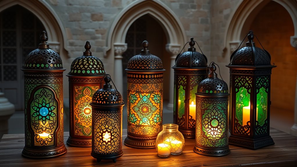 The best materials for durability and style are metal, glass, and wood. I love metal lanterns because they’re sturdy and age beautifully, adding an authentic Moroccan touch. Glass adds elegance and allows light to shine through beautifully, while wood offers warmth and natural charm. Combining these materials creates a stylish, durable lantern that enhances any space. I recommend choosing high-quality finishes to guarantee longevity and timeless appeal.