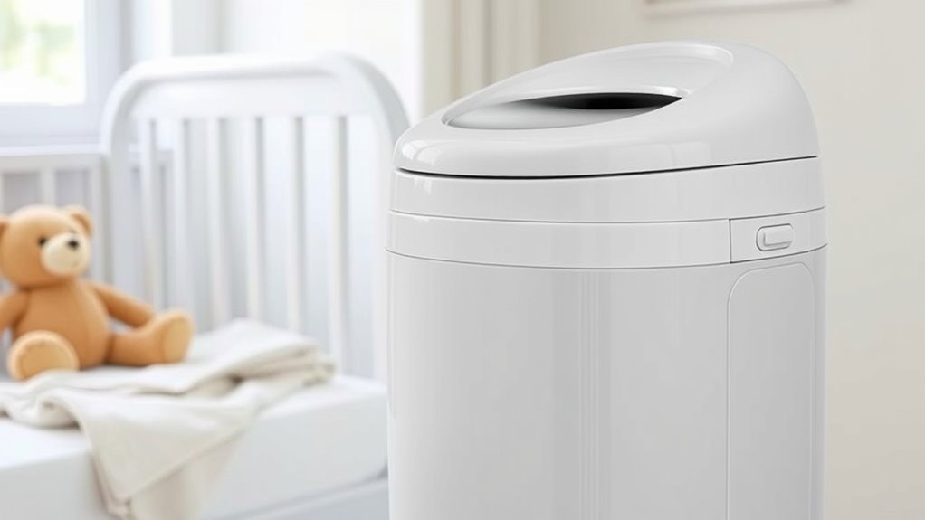Imagine the gentle click of a lid sealing in every little surprise, keeping your nursery fresh and inviting. With the right premium diaper pail, you’ll enjoy a serene space where odors stay at bay and peace of mind reigns. These systems turn a messy task into a quiet, effortless routine—like a cozy haven for your tiny miracle. Choosing the right one means more comfort for you and a fresher start for every day.