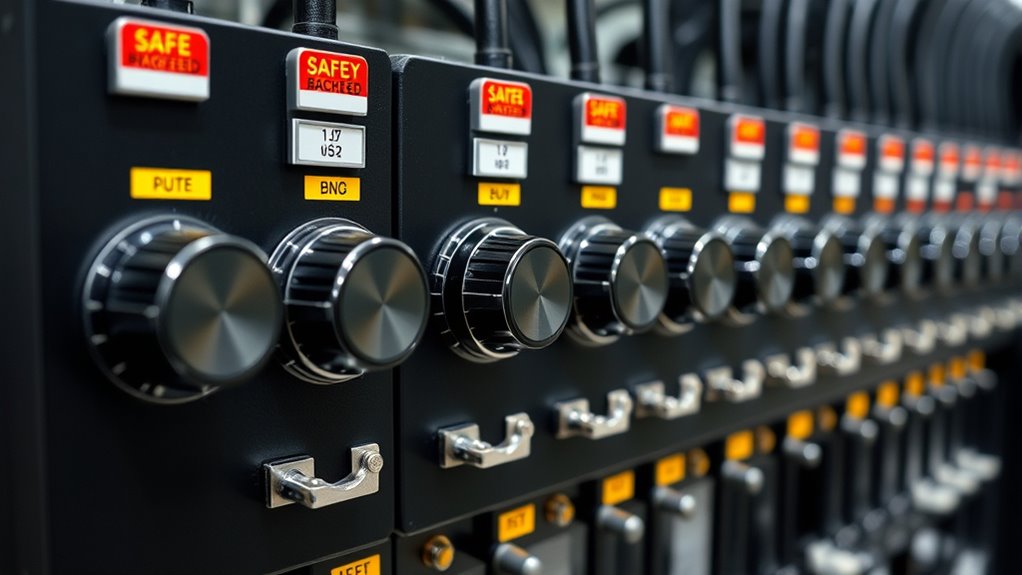 Built-in safety features are indispensable when choosing a backfeed prevention transfer switch because they directly prevent dangerous backfeeding conditions. Mechanical interlocks are essential, as they prevent simultaneous connection to both utility and generator power, reducing the risk of backfeed. Double-throw switch mechanisms ensure power flows in only one direction at a time, providing an extra layer of safety. Electrical protection systems, like overload and short-circuit breakers, help prevent backfeed caused by electrical faults. Proper grounding and safety disconnects are also critical, as they eliminate potential backflow of current into utility lines during generator use. Additionally, certifications from UL and ETL confirm that the transfer switch meets strict safety standards, guaranteeing reliable and code-compliant operation. These features are fundamental for safe and effective power management.