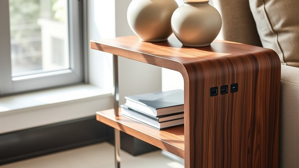 If you’re searching for the best side tables with charging ports that blend style and practicality, I’ve found some great options. These tables feature sleek designs, compact sizes, and smart storage like drawers and open shelves. They also come with built-in USB ports and outlets to keep devices powered up easily. From rustic to modern styles, there’s something for every home. Keep exploring to find the perfect match that combines function and aesthetic appeal.