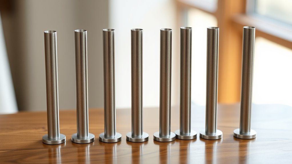 When selecting steel pillar candle pins, I focus on key factors like material durability and size compatibility to guarantee they last and fit well. I also consider design aesthetics to match my style and safety features to prevent accidents. By keeping these points in mind, I can choose the best pins for my needs efficiently.