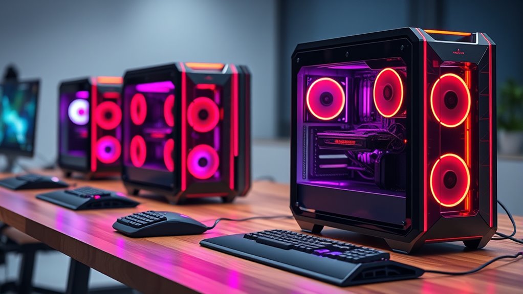 Choosing the right VR-ready desk PC can feel like steering a labyrinth, but with the right specs, you’ll be soaring through virtual worlds in no time. Remember, in 2025, even a DeLorean wouldn’t help if your PC can’t handle the latest VR. So, pick wisely, considering your gaming needs and budget. Trust me, the right machine will make your virtual adventures feel as seamless as a trip to the moon.