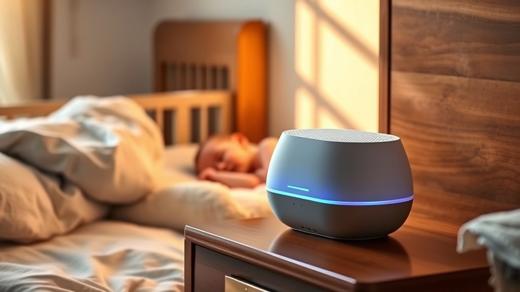 Absolutely, white noise machines are safe for babies when used properly. I’ve seen their calming effects firsthand—imagine a tiny, peaceful bundle drifting off to sleep in a cocoon of gentle, consistent sound. Just make sure the volume is low enough to avoid damage, and keep the machine at a safe distance. When used responsibly, these devices can help your little one sleep peacefully and soundly.