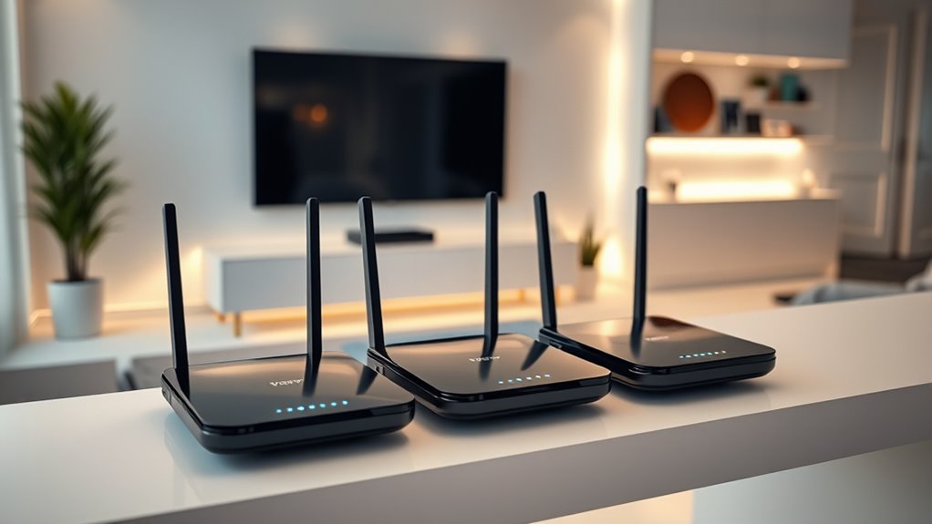 Think of Wi-Fi 7 mesh systems as digital fortresses. They come with standard security features like WPA3 encryption, which acts as an unbreakable vault for your data. Many also include automatic firmware updates, ensuring your defenses stay sharp. Some systems offer built-in firewalls and parental controls, giving you the power to guard your network like a seasoned sentinel. Rest assured, your connected world gets the security it deserves.