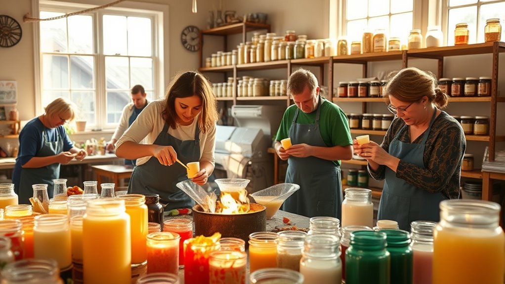 Candle recycling programs typically organize collection methods and locations to make it easy for participants to contribute. Community drop-offs are a popular option, where you can bring used candles to a central spot on scheduled days. Designated collection points, such as local stores, community centers, or recycling centers, also simplify the process. These locations are often clearly marked and accessible, encouraging more people to participate. Some programs may even offer curbside pickup, making it even more convenient. By providing multiple options, communities ensure that everyone has a straightforward way to recycle their wax and candle containers. Clear signage and regular collection schedules help keep the process organized, so you know exactly where to go and when to drop off your candles. Observing community engagement and local laws can also influence how effective these programs are, especially when considering environmental impact and waste reduction efforts. Moreover, incorporating community involvement and feedback can enhance program success and sustainability. Additionally, promoting awareness through public education can significantly increase participation rates and improve overall program success.