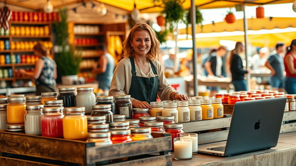 To map your candle sales funnel from the farmer’s market to Shopify, start by creating memorable packaging that builds brand recognition and encourages repeat purchases. Engage customers with personalized follow-ups and loyalty incentives to forge strong relationships. Use your packaging to promote other products and social media, turning buyers into brand ambassadors. Continuously optimize each touchpoint for a seamless experience, helping you grow your customer base online. Keep exploring to discover how to craft a full, effective sales journey.