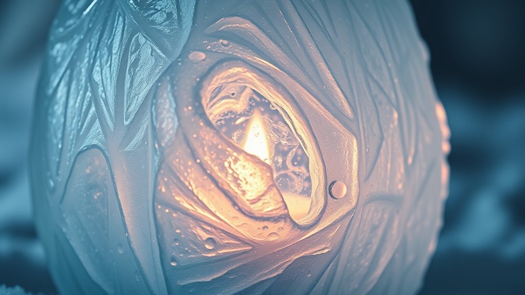 Have you ever wondered why some ice candles turn out cloudy or frosty? The key lies in ideal freezing temperatures. When temperature control isn’t precise, frost formation occurs, trapping air bubbles and cloudiness. To achieve clear ice, keep your freezer between 0°F and 5°F (-18°C to -15°C). Here’s what to focus on: