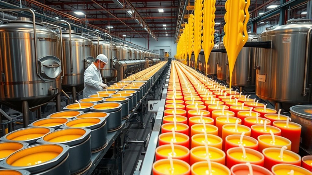 Now that you’ve glimpsed the gentle artistry behind commercial candle-making, you can appreciate the delicate dance of every step. From carefully choosing ingredients to the final touches, each candle is crafted with care and a touch of magic. So, next time you light one, remember the quiet craftsmanship that makes your cozy moments possible. It’s a beautiful reminder that even the simplest pleasures are born from a bit of tender craftsmanship.